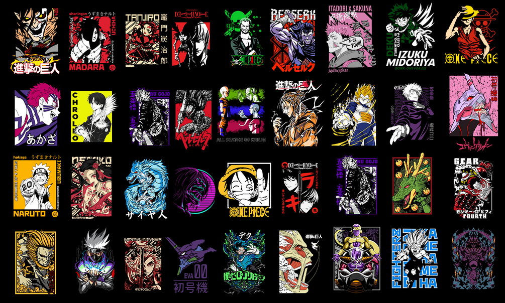 250 high-quality Anime designs PNG without background Ready to Print, that can be used on t-shirts, mugs, hoodies and more.